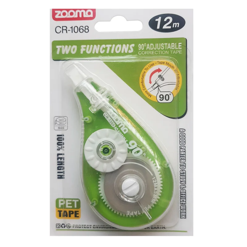 طراحی لاک نواری بگونه ای میباشد که افراد راست دست می توانند از آن استفاده کنند لاک غلط گیر نواری zooma بصورتی طراحی شده که با چرخش نوک آن به اندازه 90 درجه چپ دست ها هم میتوانند از آن استفاده کنند . لاک غلط گیر نواری 12 متری zooma به قطر 5 میلی متر با قابلیت چرخش نوک 90 درجه ای برای افراد چپ دست و راست دست.
